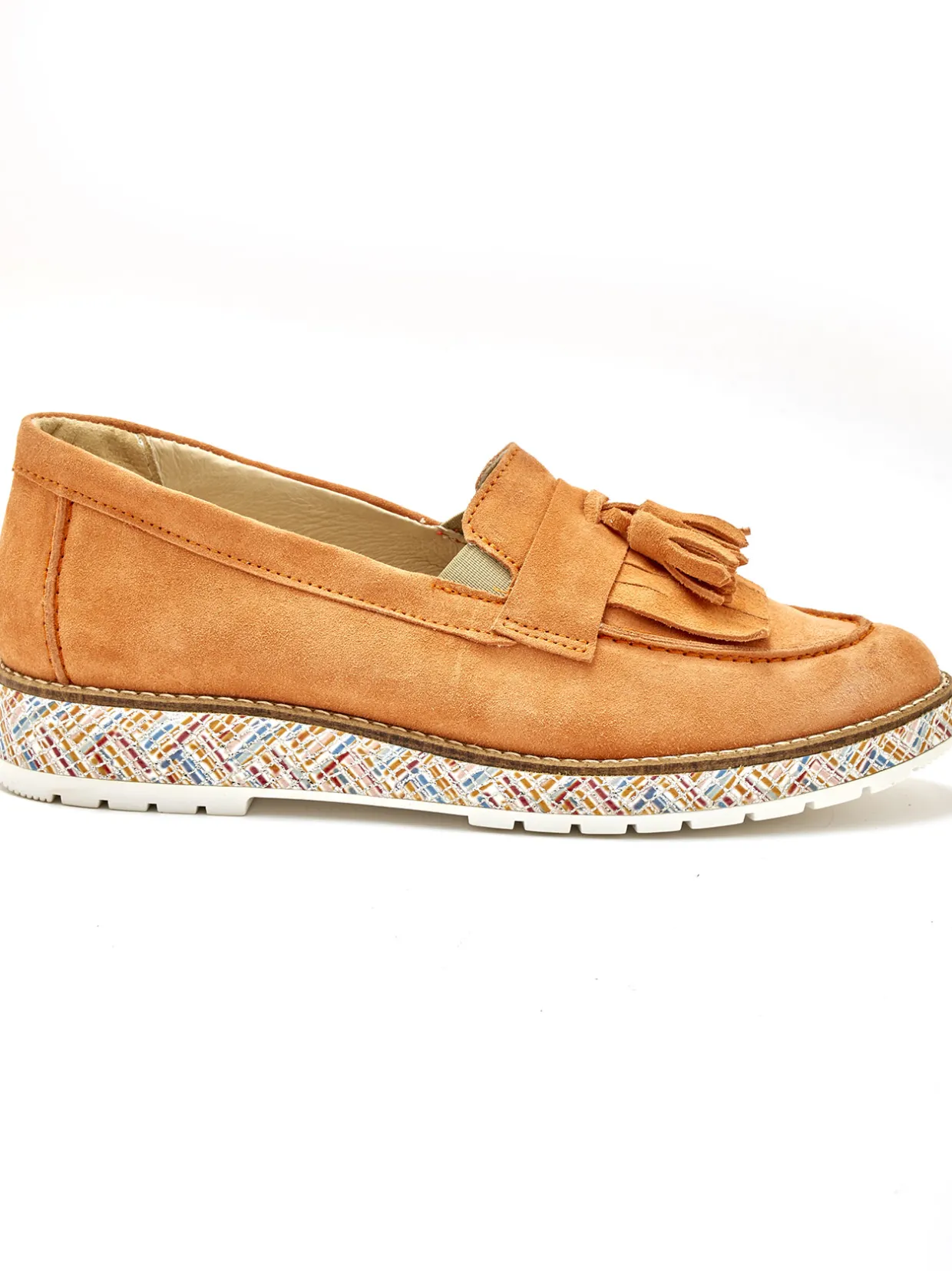 Largeur confort pour ces mocassins frangés femme, une largeur adaptée aux pieds exigeants souhaitant un confort supérieur.