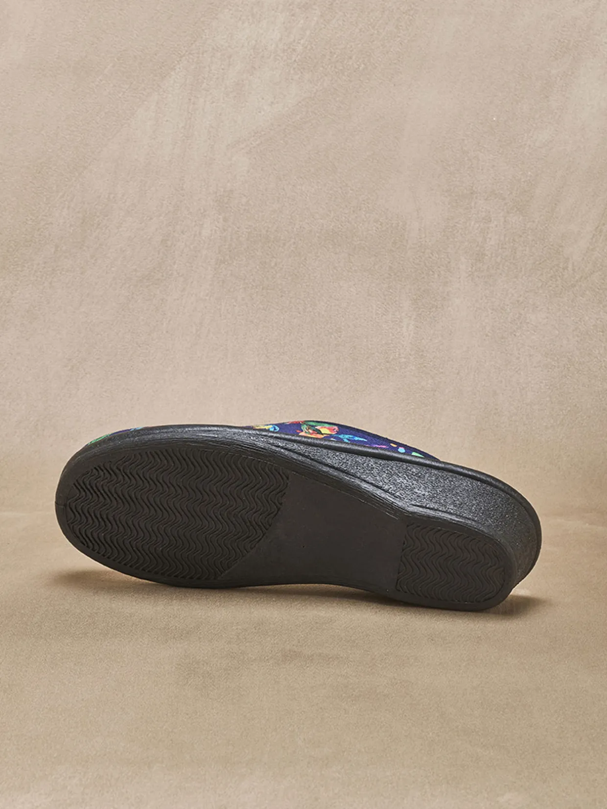 Dessus : textile. Doublure et semelle intérieure éponge. Finition biais. Semelle semi-compensée en élastomère.