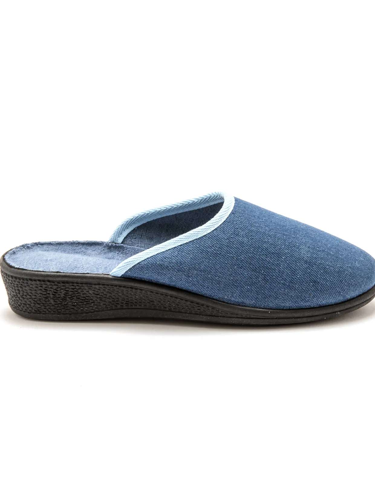 Dessus : textile. Doublure et semelle intérieure éponge. Finition biais. Semelle semi-compensée en élastomère.