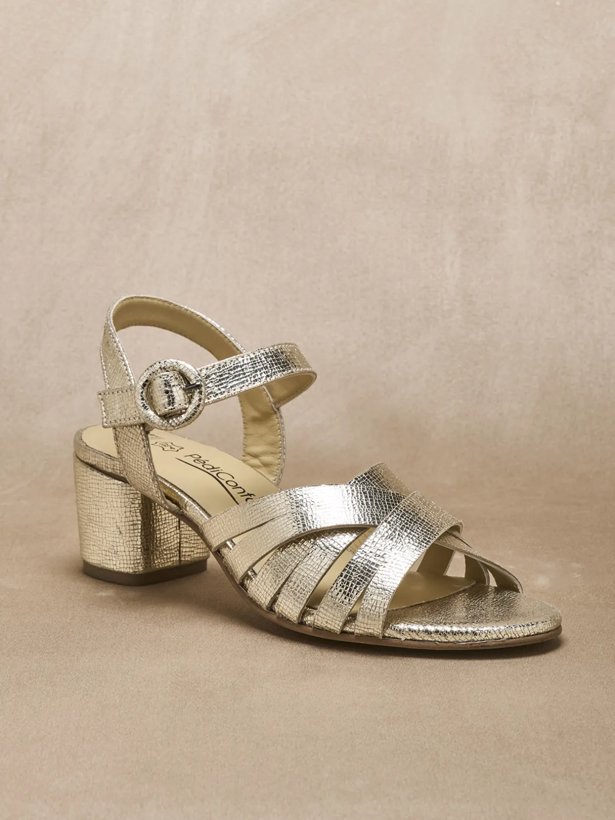 Les sandales en cuir métallisé PEDICONFORT®, l’accessoire parfait pour ajouter une touche de brillance à votre garde-robe estivale. Ces sandales sont idéales pour celles qui souhaitent se démarquer sans compromis sur le confort.