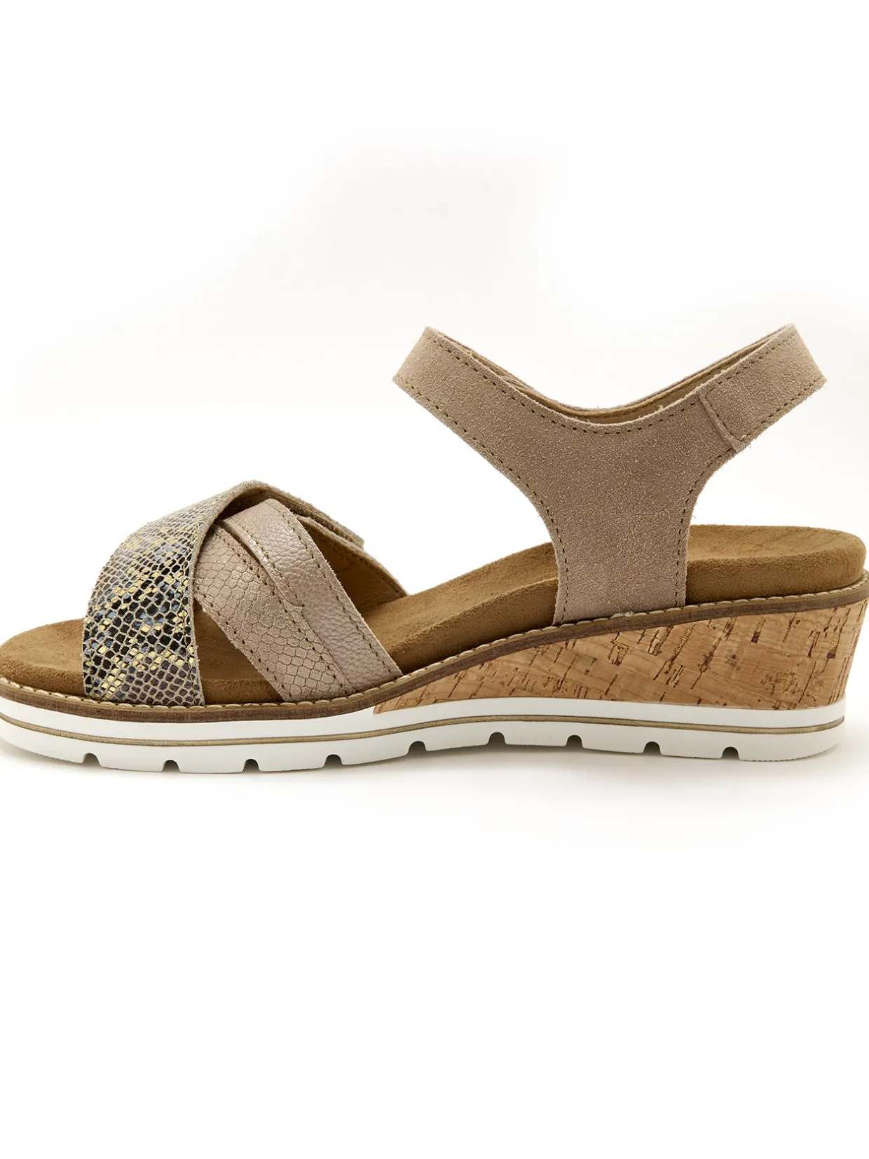 Ces sandales double scratch PEDICONFORT®, prennent un peu de hauteur, avec leur petit talon compensé, et ça nous va très bien !