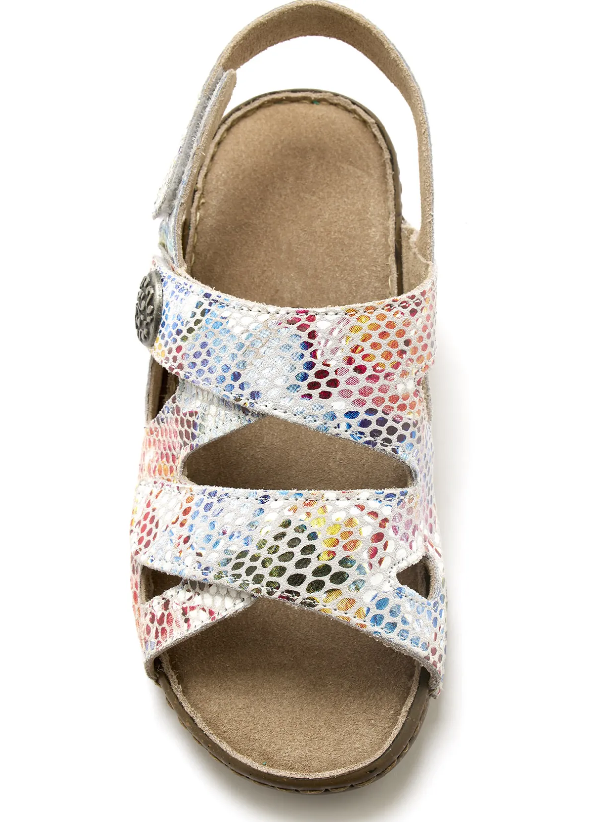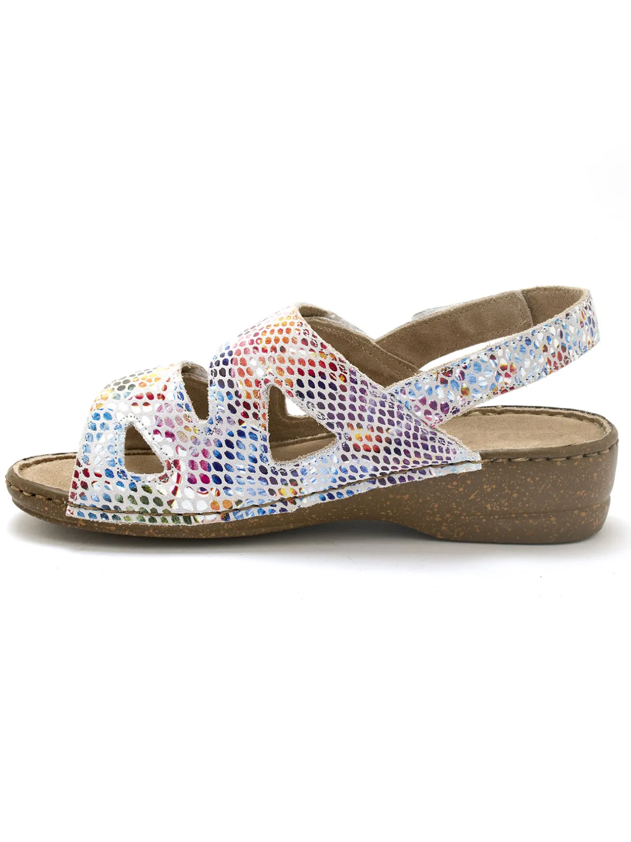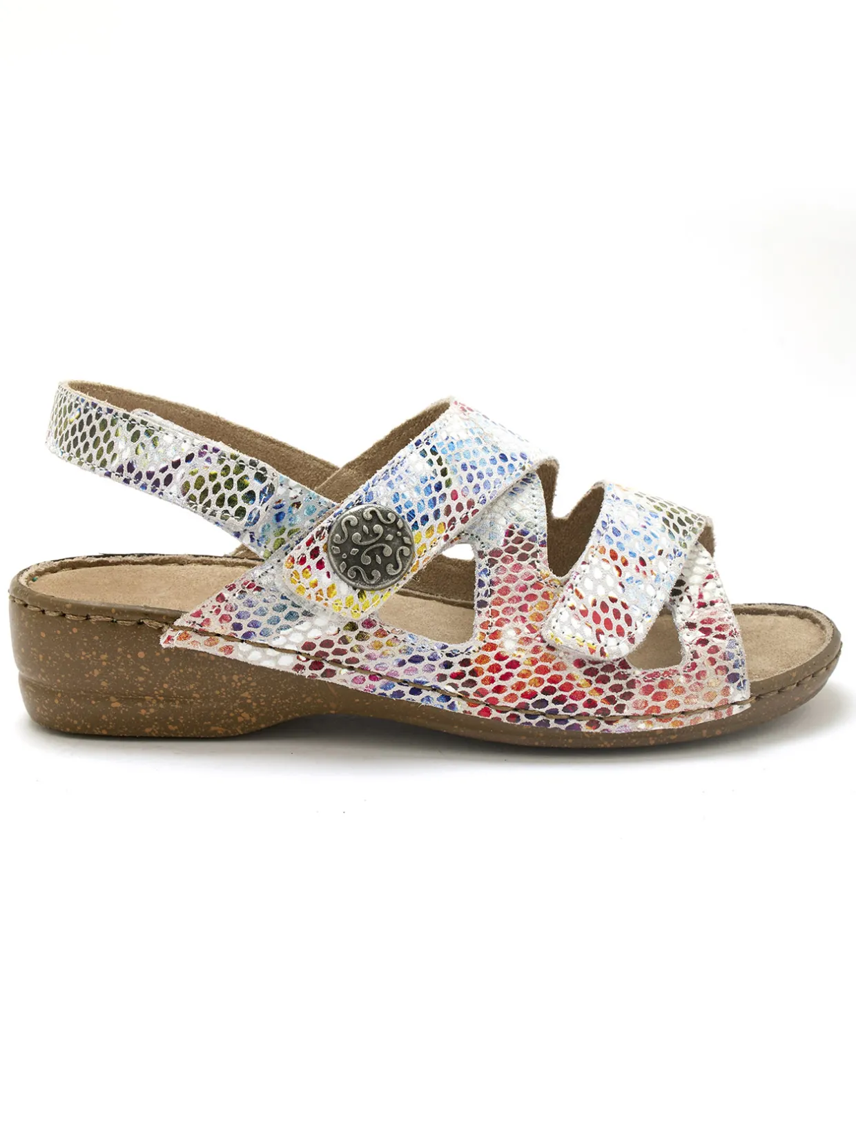 Extra larges, ces sandales à scratch apportent plus de volume intérieur pour les pieds les plus sensibles qui ne sont plus soumis aux compressions douloureuses