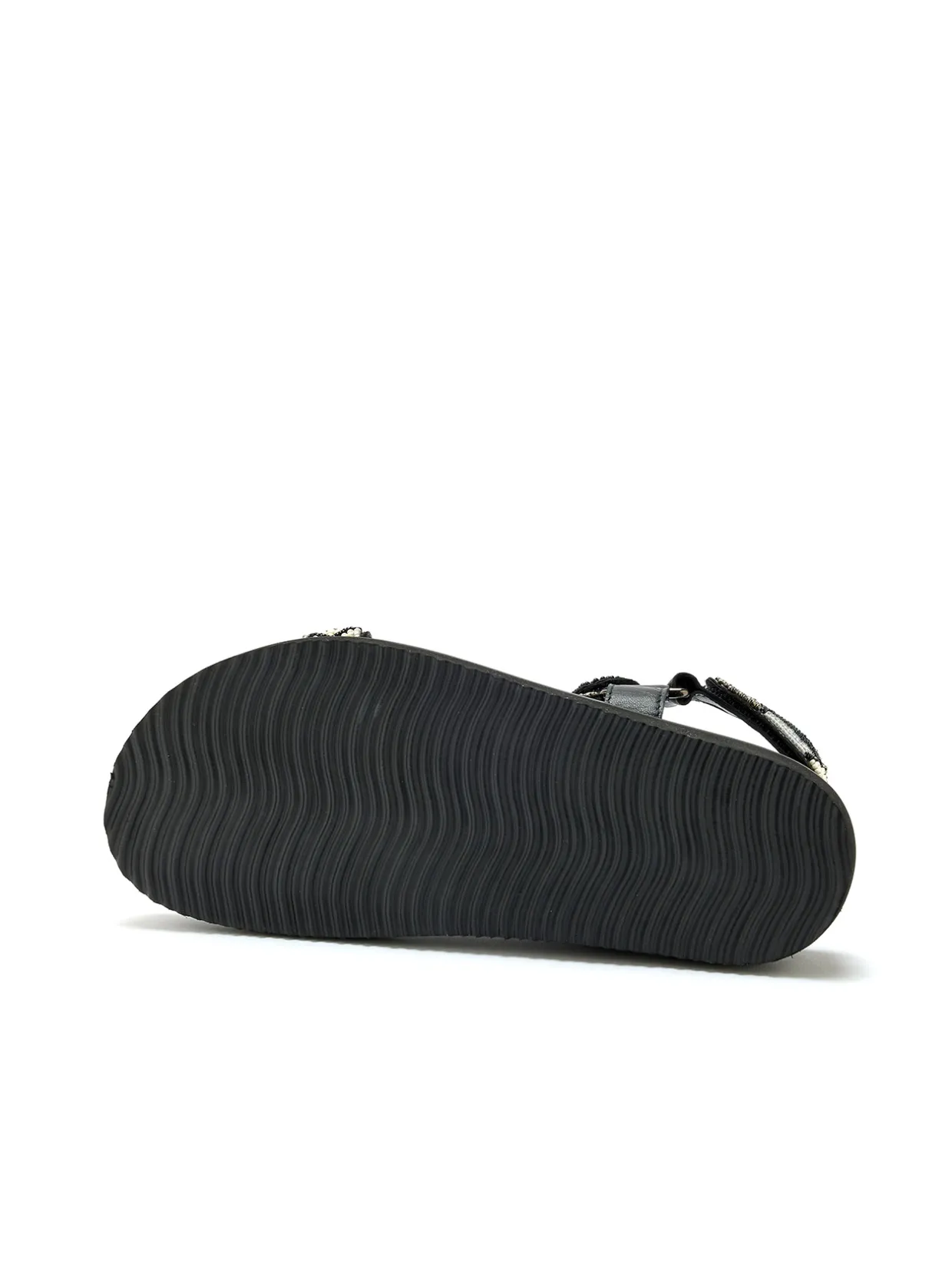 Toute l’originalité et le style de ces sandales en cuir s’exprime au travers de ses perles fantaisie : un détail qui en fait de petites pépites du dressing estival. Côté confort et praticité, ces sandales noires sont munies de 3 pattes scratch, pour une adaptation sur mesure au pied !
