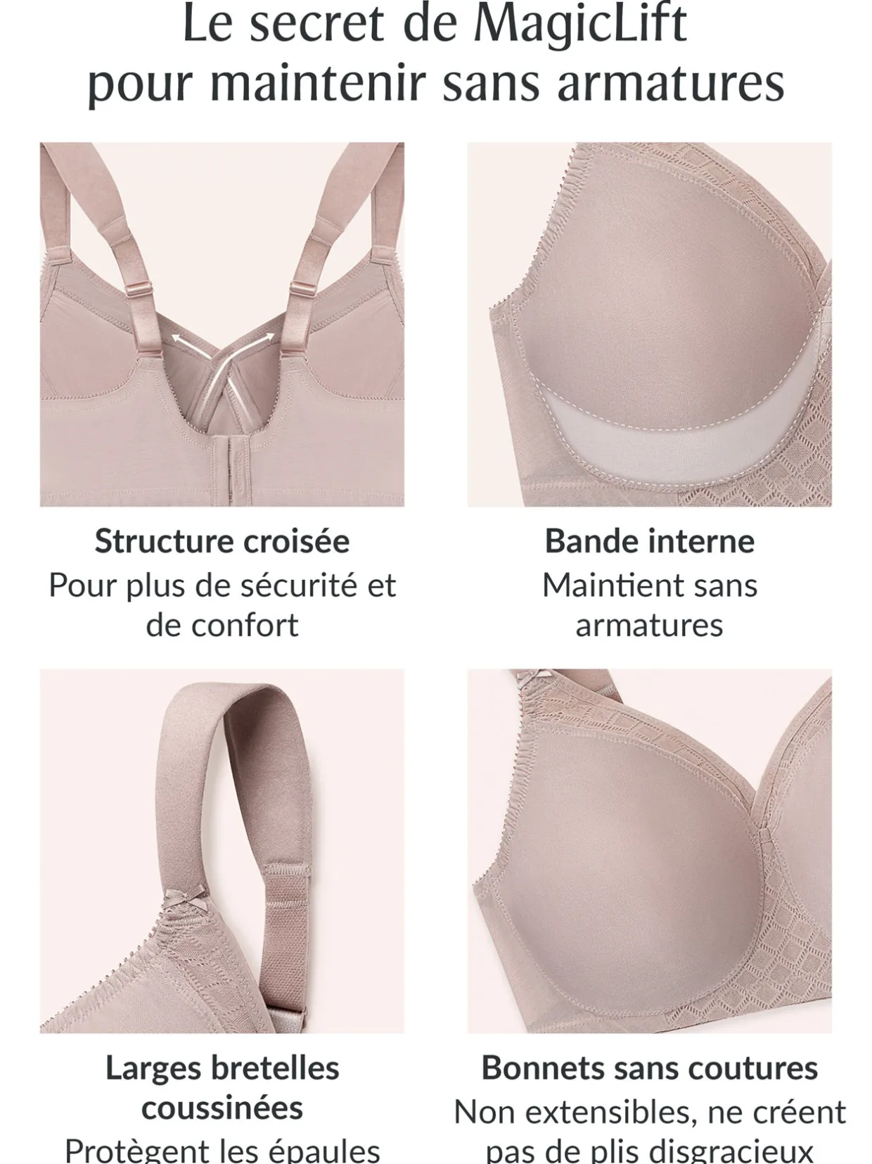 Ce soutien-gorge sans armatures Magic Lift® de Gamorise® est exceptionnel : sa bande ouatinée interne spécifique permet de remonter, dessiner, maintenir la poitrine, pour un maximum de confort. Vous vous sentirez fraîche en toutes circonstances grâce à sa conception qui évacue l’humidité.