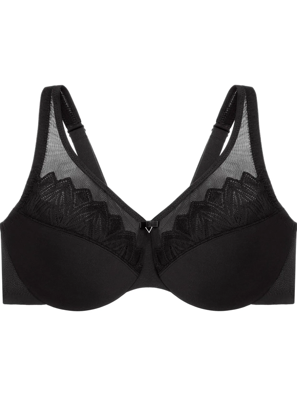 – Grâce à ses bonnets minimiseurs constitués de mesh et de dentelle tout en légèreté, ce soutien-gorge à couverture totale réduit la projection de la poitrine de 2,5 cm pour permettre à vos tops de tomber parfaitement