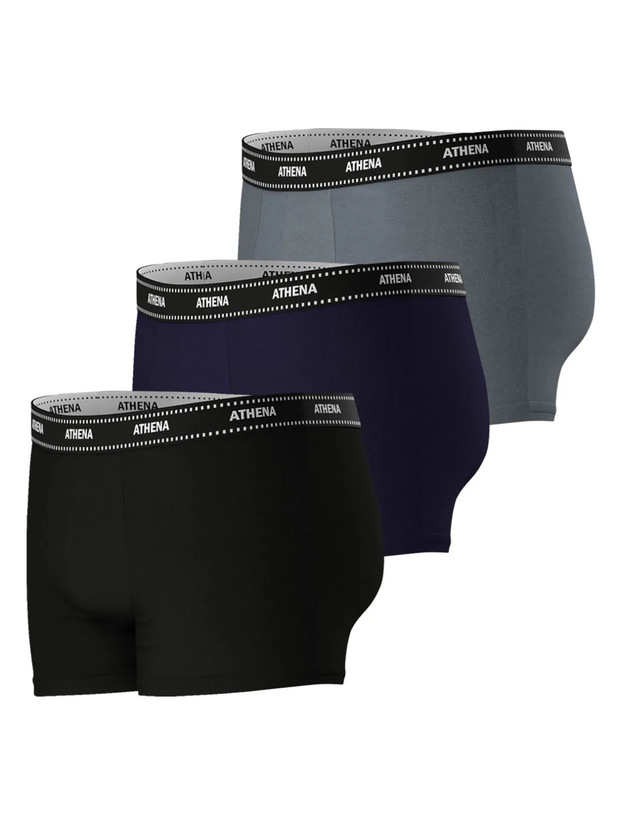 Lot de 3 boxers fermés ATHENA : le confort d’une maille coton enrichie d’élasthanne.