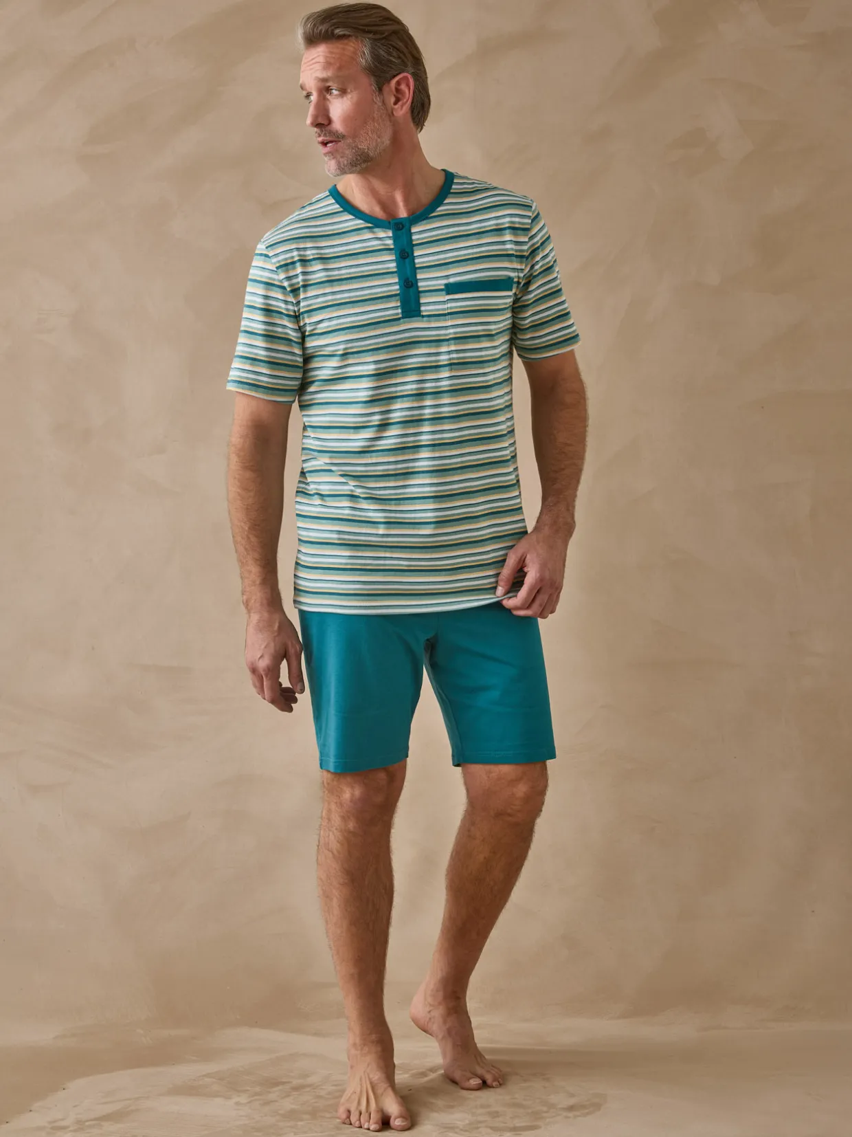 Ce pyjashort homme est conçu pour s’adapter à toutes les morphologies : petites et grandes tailles.