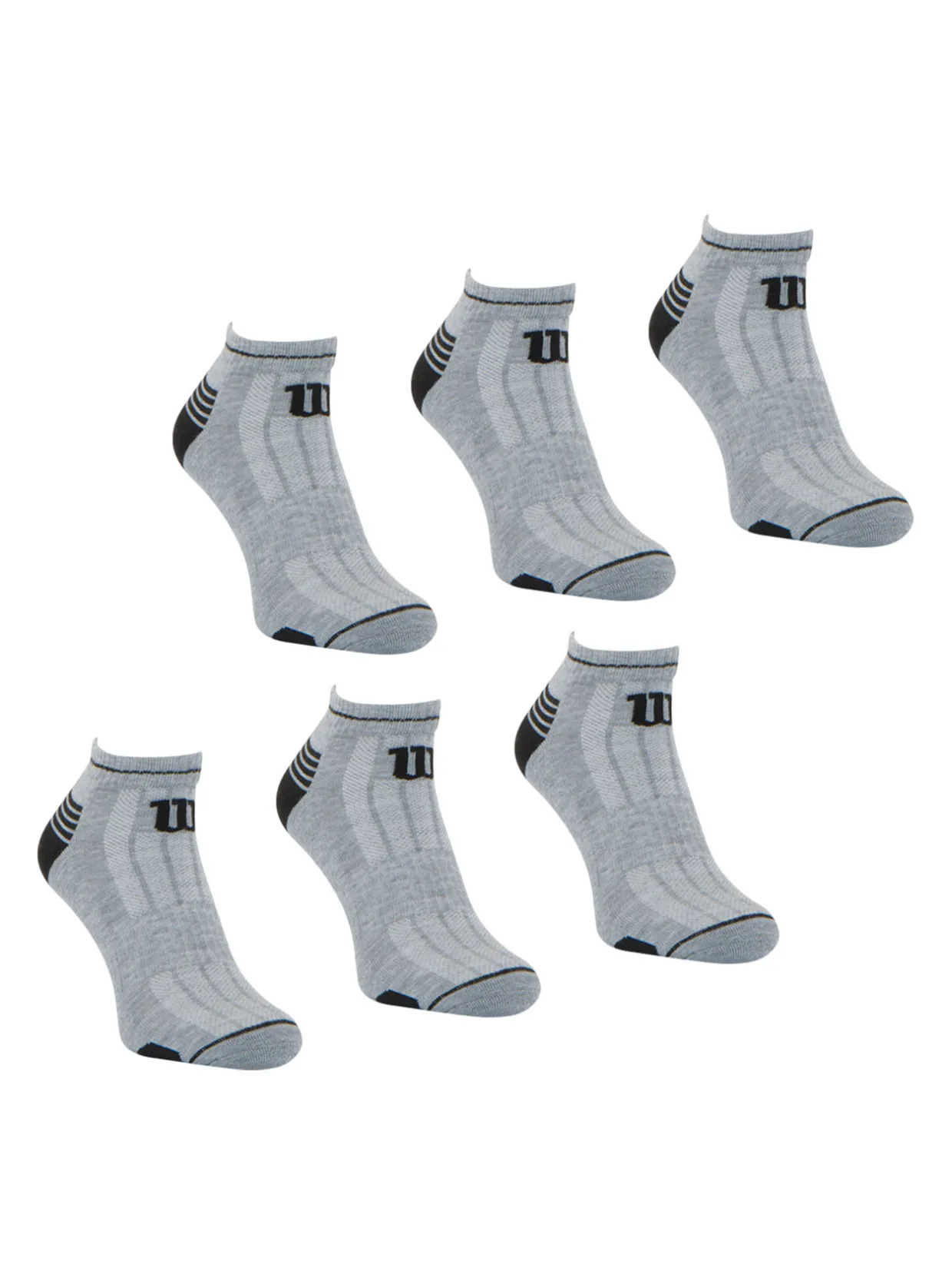 Lot de 6 paires de chaussettes low cut pour homme Wilson. Chaussettes en polyester. Evacuation de la transpiration accélérée.