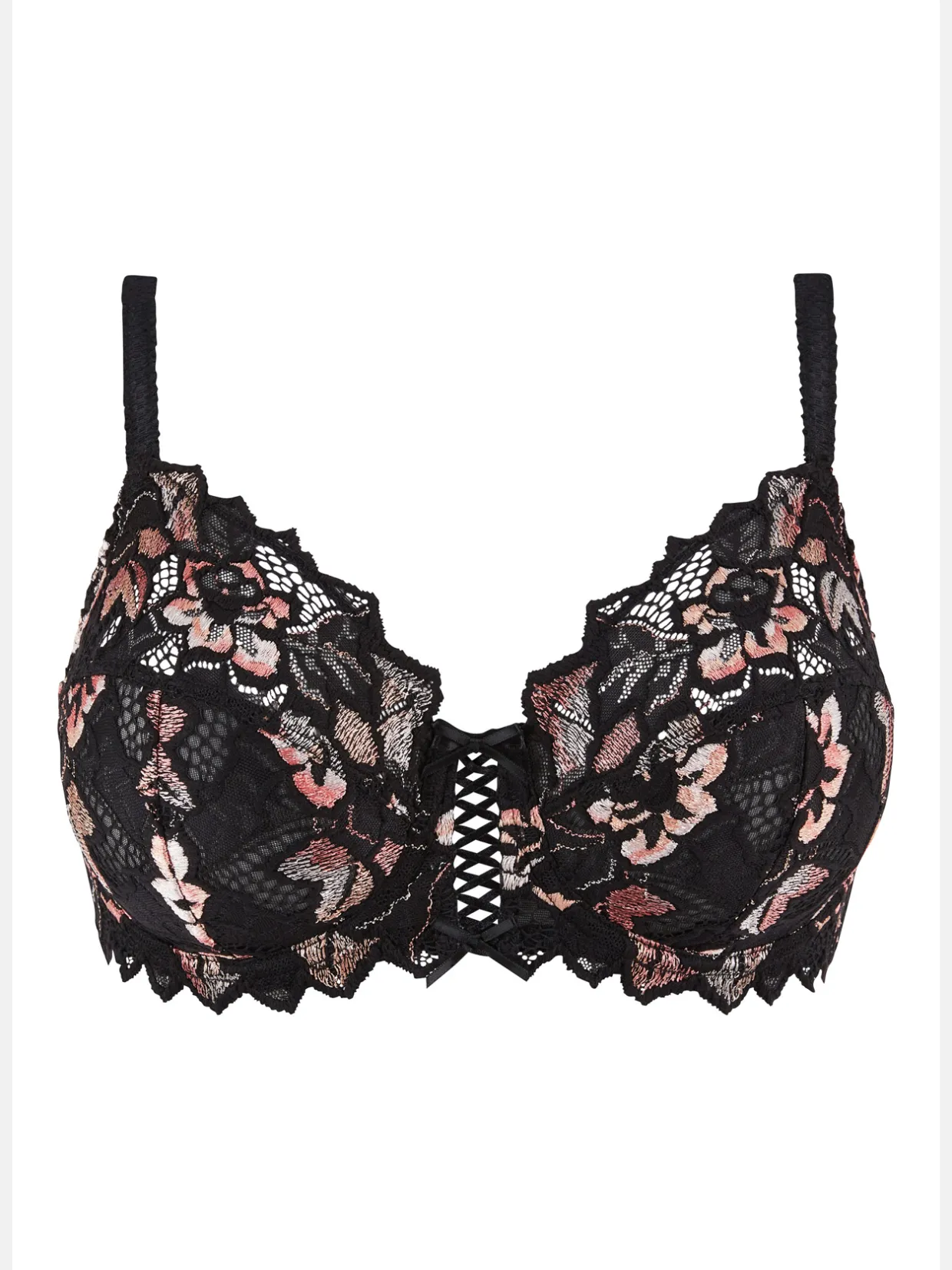 Dentelle 77% polyamide, 15% polyester, 8% élasthanne. Tissu 83% polyamide, 17% élasthanne. Doublure dos 89% polyamide, 11% élasthanne. Doublure 100% polyamide.