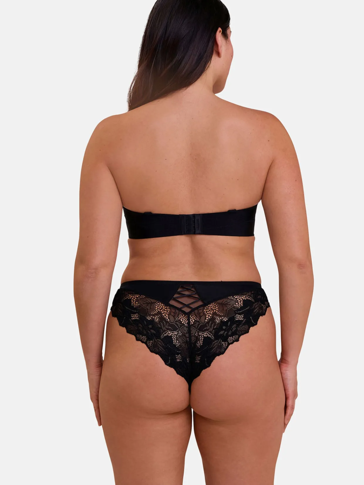 – Un jeu de laçage et la dentelle extensible sous le bonnet apportent la touche de glamour