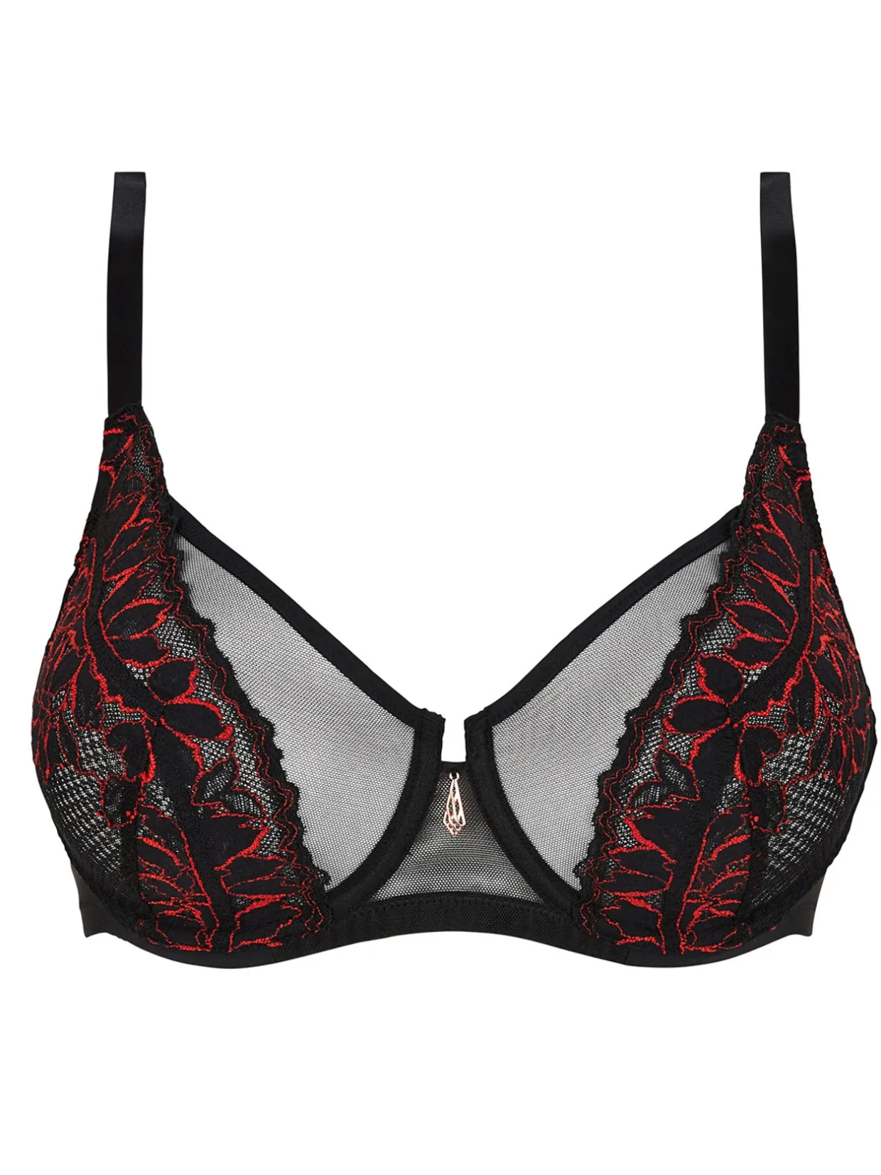 Le soutien-gorge Mélodie SANS COMPLEXE est ultra séduisant. Il sublimera parfaitement votre poitrine, grâce à sa forme effet foulard, sont tulle transparent et sa spéctaculaire dentelle bicolore aux détails sophistiqués. Doublé de tulle rigide, il assure un maintien optimal tout en préservant son élégance. Un bijou cuivré est positionné au séparateur pour un côté ulta chic.