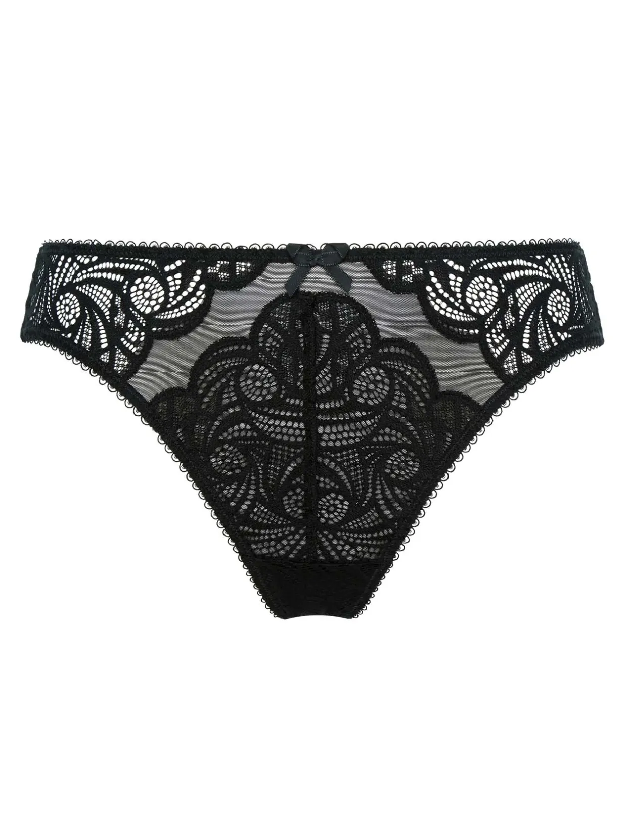 Optez pour le tanga Ariane de SANS COMPLEXE®, un bas du corps en dentelle, tulle et microfibre.
